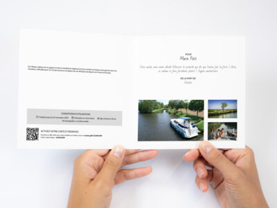 Ce chèque cadeau est un apport ou bien la totalité du règlement d'une croisière en bateau sans permis avec Les Canalous, utilisable pour 2 à 12 personnes et au départ de nos 40 bases de départs en France et Europe.